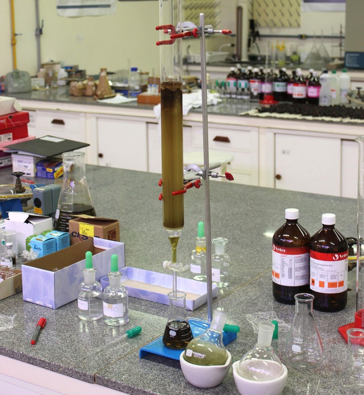 Laboratório equipado para realização de aulas práticas de análises orgânicas e sínteses de produtos orgânicos.
